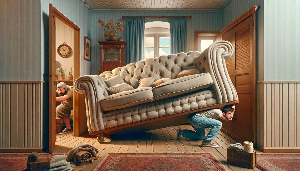 Let me share a story from a friend who thought he had his couch removal in the bag. This couch was a beast, a relic from the ’80s that weighed more than a small car. He pushed, he pulled, he twisted and turned, but the couch wouldn’t budge. After a few hours of this solo wrestling match, the couch emerged victorious, leaving my friend with a pulled muscle and a living room still dominated by the bulky brute.